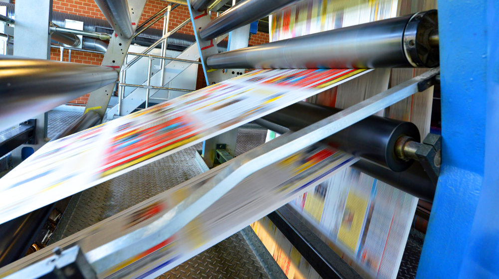 Der Offsetdruck zählt zu den Flachdruck-Verfahren und arbeitet indirekt: Das Motiv wird von einer Druckplatte auf einen Gummizylinder übertragen und von dort auf das Medium (z. B. Papier). Druck- und Nichtdruckstellen liegen auf einer Ebene, und das nichtdruckende Bildfeld wird mit Feuchtmitteln behandelt.